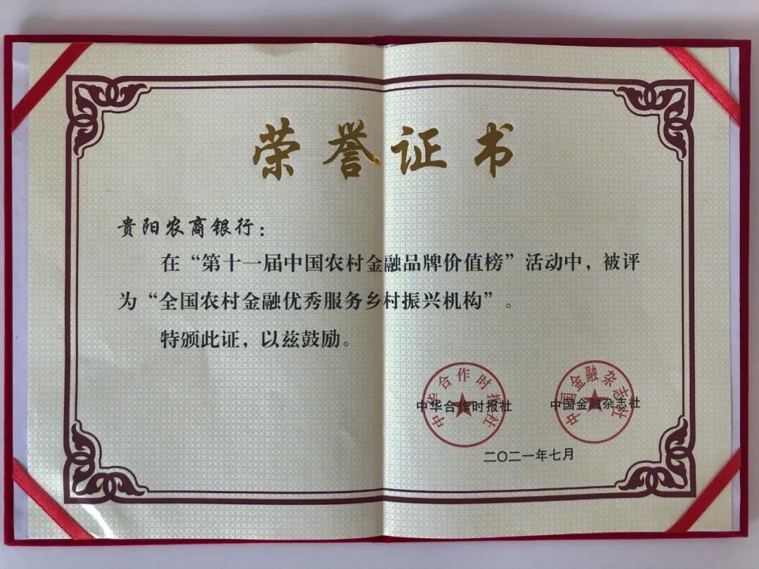 贵阳农商银行荣获第十一届中国农村金融品牌价值榜“全国农村金融优秀服务乡村振兴机构”